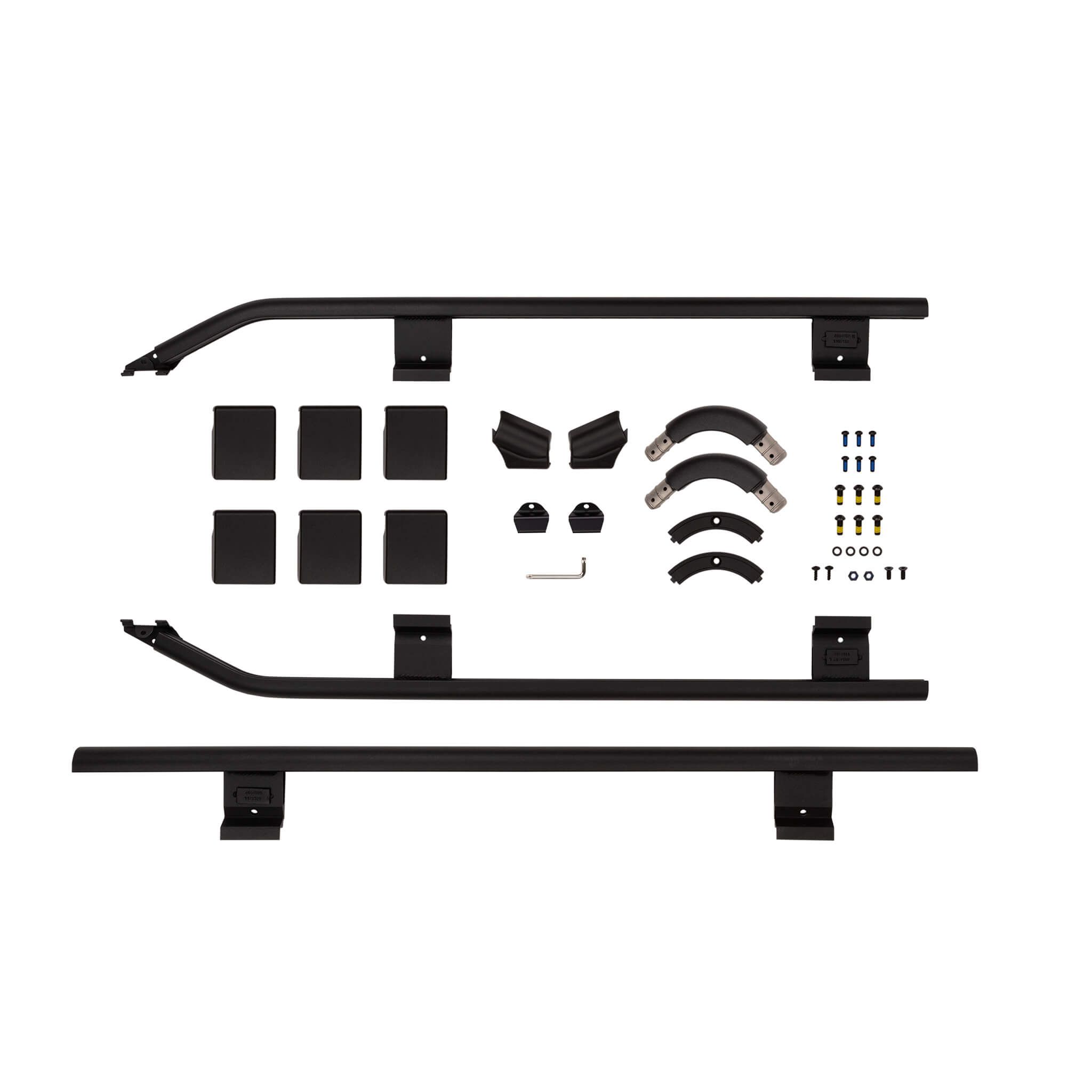 The BASE Rack takes accessories and cargo loading to a whole new level of simplicity, speed and personalization. With a choice of sizes, accessories and attachments, you can truly Make It Your Own. By incorporating a dovetail extrusion around both the full perimeter and along each edge of the internal beams, the BASE Rack provides endless mounting and attachment options. Adding, removing and repositioning accessories and roof loads is quick and easy with the BASE Rack's dovetail system, making it easier to install and remove individual items without disturbing the whole load. Plus, unlike traditional roof rack channels, the BASE Rack dovetail extrusion won't collect dust and debris. Each BASE Rack accessory or fixture attaches to the rack with a simple clamp mount, including larger hardware such as Hi-Lift Jack mounts, rollers, recovery boards and even a BASE Rack custom light bar.