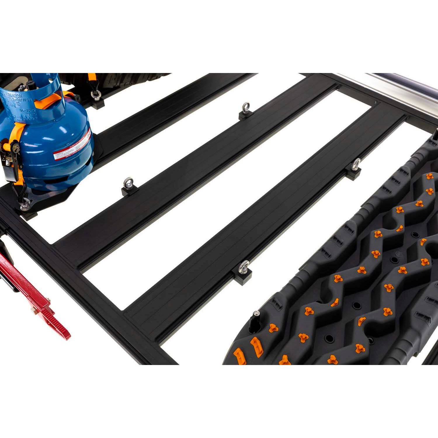 The BASE Rack takes accessories and cargo loading to a whole new level of simplicity, speed and personalisation. With a choice of sizes, accessories and attachments, you can truly Make It Your Own. By incorporating a dovetail extrusion around both the full perimeter and along each edge of the internal beams, the BASE Rack provides endless mounting and attachment options. Adding, removing and repositioning accessories and roof loads is quick and easy with the BASE Rack's dovetail system, making it easier to install and remove individual items without disturbing the whole load. Plus, unlike traditional roof rack channels, the BASE Rack dovetail extrusion won't collect dust and debris. Each BASE Rack accessory or fixture attaches to the rack with a simple clamp mount, including larger hardware such as Hi-Lift Jack mounts, rollers, recovery boards and even a BASE Rack custom light bar.