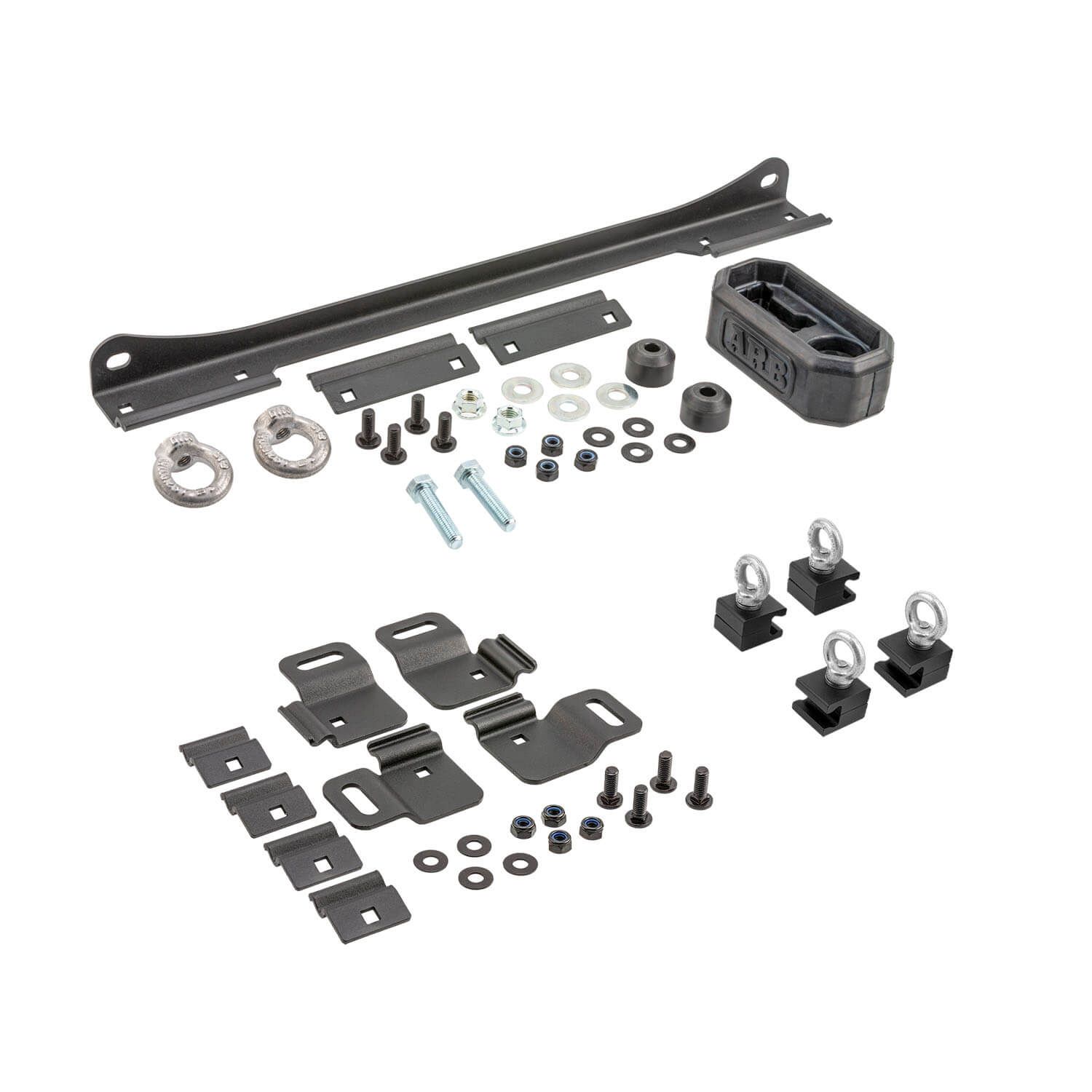Get out of trouble faster with BASE Rack accessories built to keep your recovery gear accessible, yet securely stowed. All-purpose Eye Bolt Tie Downs offer flexibility, bracket and quick-release pins keep recovery boards easily accessible, and a sturdy holder stows a farm jack safely and securely.