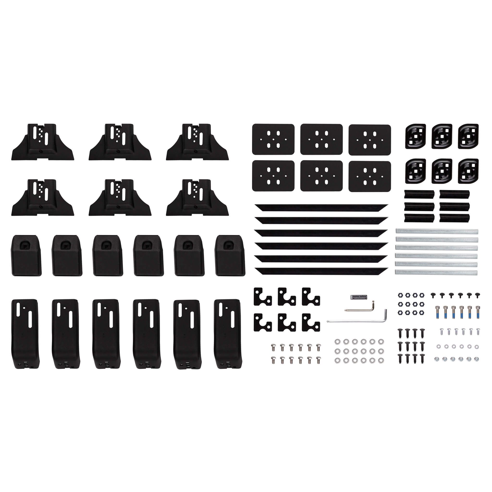 ARB BASE Rack gutter mount leg kits are based on ARB's traditional roof rack fit kits but now finished in Integrit textured black and with support plates to suit the BASE Rack extrusion. Steel gutter runners with plastic sleeves are included to spread the load within the vehicle's roof gutter.