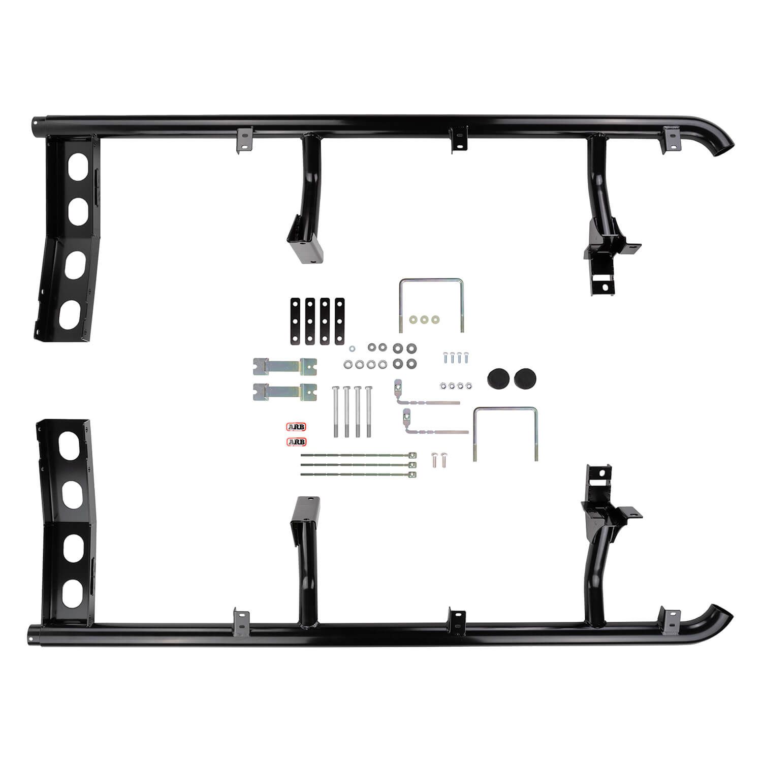 Side rail and combination steps to protect the front quarter panels and lower sills. The integrated step offers improved vehicle access. While they offer an excellent barrier against rock ledges, they are not considered a true rock slider that might be required for aggressive rock crawling.