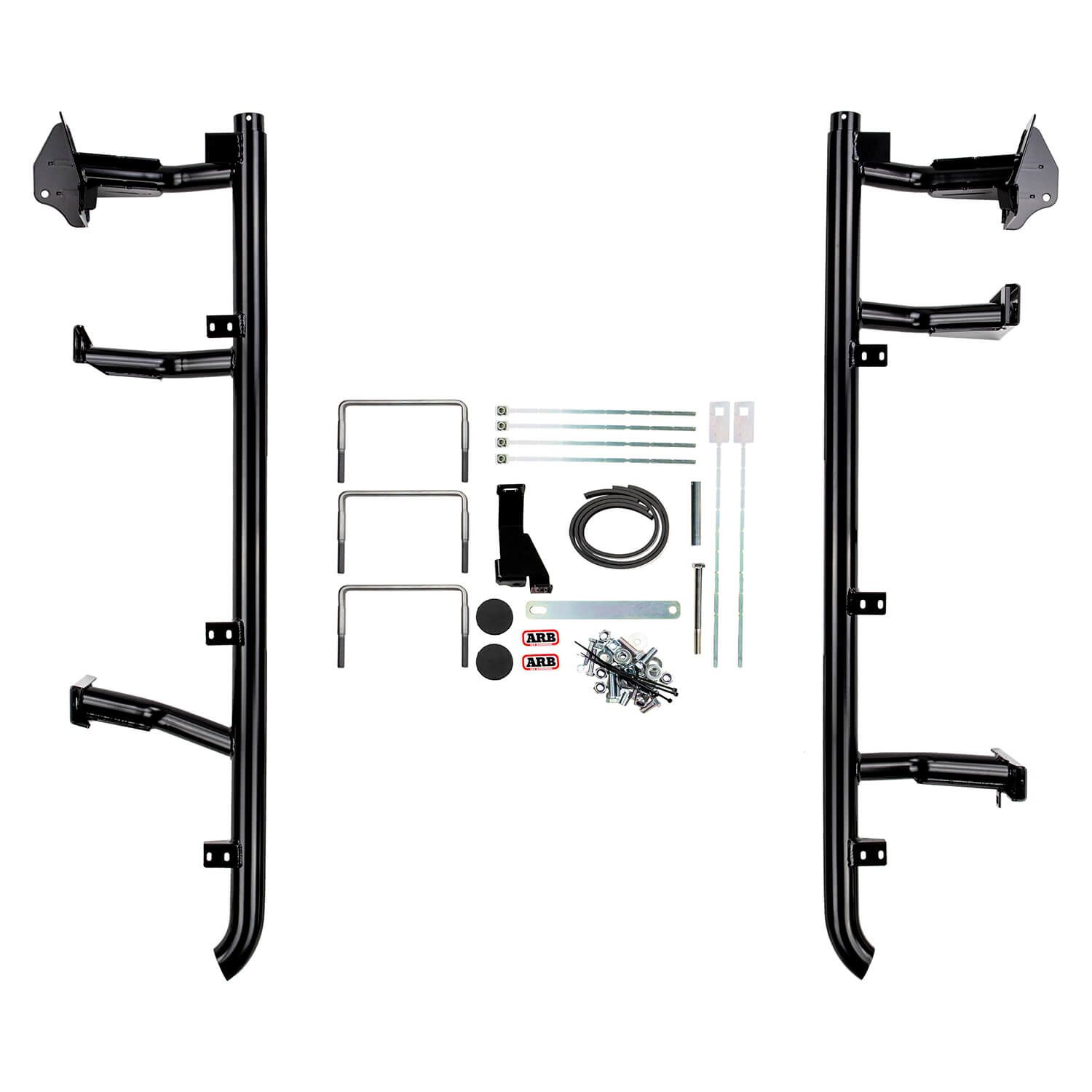 Side rail and combination steps to protect the front quarter panels and lower sills. The integrated step offers improved vehicle access. While they offer an excellent barrier against rock ledges, they are not considered a true rock slider that might be required for aggressive rock crawling.