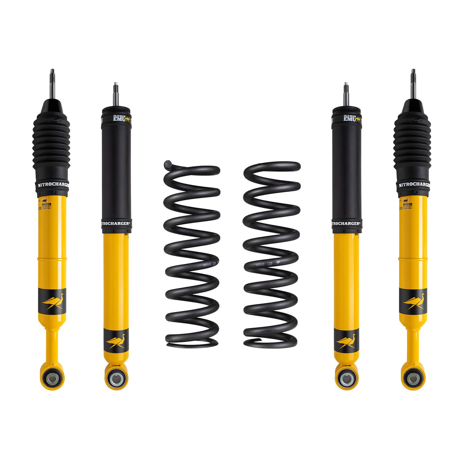 Old Man Emu offers a range of tuned and matched integrated suspension kits to ensure the right suspension is selected for how the vehicle is outfitted and the conditions it will encounter. Old Man Emu suspension systems are designed to enhance ride quality, ride control, load-carrying capacity, and ride height. When building an off-road vehicle, it's best to notate the heavy parts that you plan to add. Heavy components will slowly begin to compress your suspension which results in vehicle sag. Choosing an Old Man Emu integrated suspension kit will avoid sag and ride discomfort as our engineers have tuned and matched suspension components for a range of different weights. Old Man Emu has an offering of 3 different shock absorbers to ensure that you can find an integrated suspension kit to suit your every demand, vehicle outfit and road condition. This suspension lift kit comes with Old Man Emu Nitrocharger shocks. Nitrocharger is a twin-tube design with the outer reserve tube providing protection to the internal components off road. Nitrocharger represents an excellent upgrade opportunity for any 4WDer seeking an increase in vehicle control and comfort, increased ride height, and load carrying capability. This suspension lift kit is tuned and matched for the Toyota 4Runner to provide 2.5in of lift in the front, with a weight of 220-330lbs and provide 0in of lift in the rear with a weight of 0lbs.