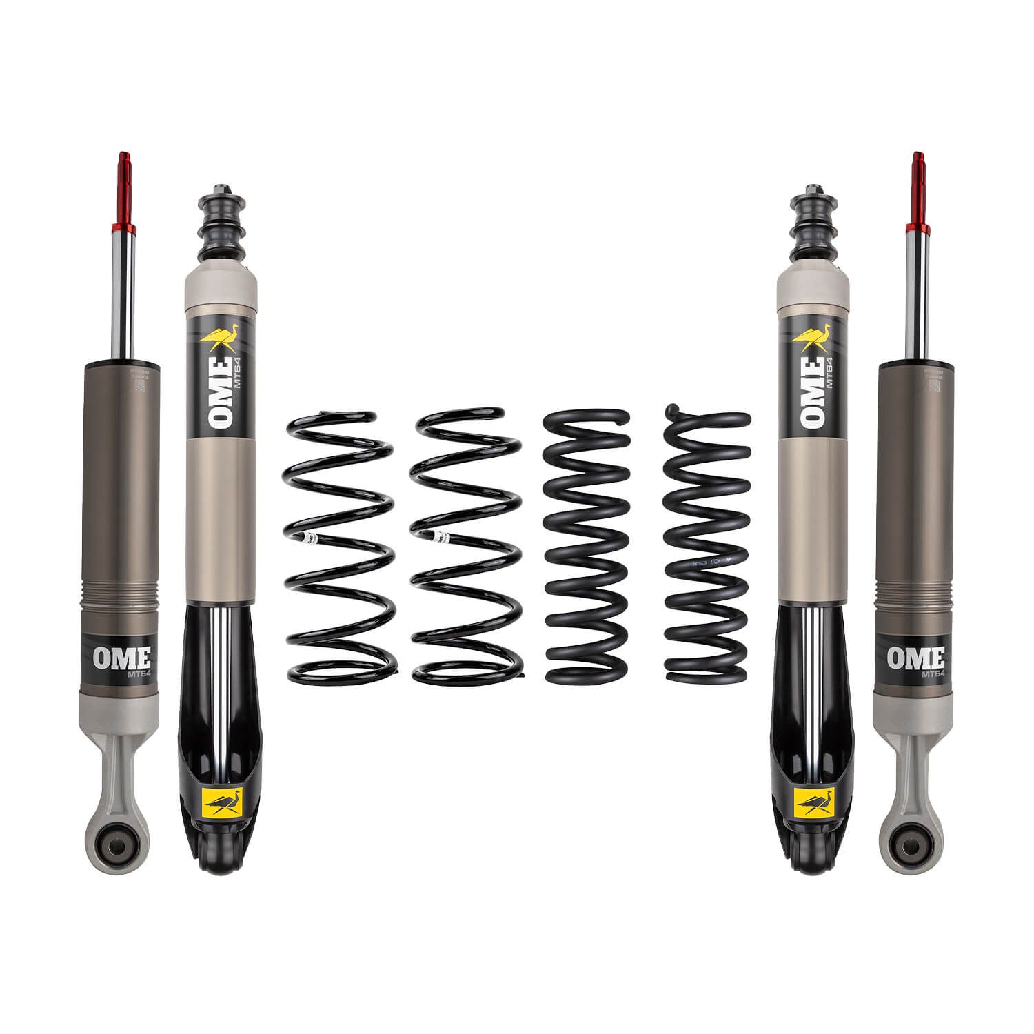 Old Man Emu offers a range of tuned and matched integrated suspension kits to ensure the right suspension is selected for how the vehicle is outfitted and the conditions it will encounter. Old Man Emu suspension systems are designed to enhance ride quality, ride control, load-carrying capacity, and ride height. When building an off-road vehicle, it's best to notate the heavy parts that you plan to add. Heavy components will slowly begin to compress your suspension which results in vehicle sag. Choosing an Old Man Emu integrated suspension kit will avoid sag and ride discomfort as our engineers have tuned and matched suspension components for a range of different weights. Old Man Emu has an offering of 3 different shock absorbers to ensure that you can find an integrated suspension kit to suit your every demand, vehicle outfit and road condition. This suspension lift kit comes with Old Man Emu MT64 shocks. Designed, engineered and manufactured by ARB’s specialized Old Man Emu suspension engineers, the MT64 is an expertly constructed blend of proven reliability and durability with added premium features, making it the perfect all-rounder. The MT64 has a massive internal bore of 64mm which gives our engineers a much larger scope for perfectly tuning the shock absorber for your vehicle platform. This results in a large increase in vehicle control and comfort. This suspension lift kit is tuned and matched for the Toyota 4Runner to provide 2.5in of lift in the front, with a weight of 0lbs and provide 2in of lift in the rear with a weight of 0lbs.