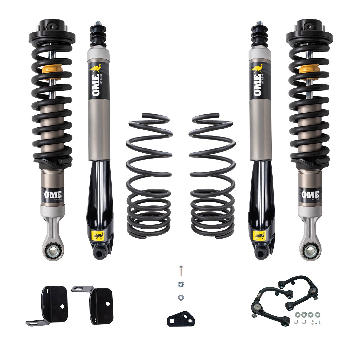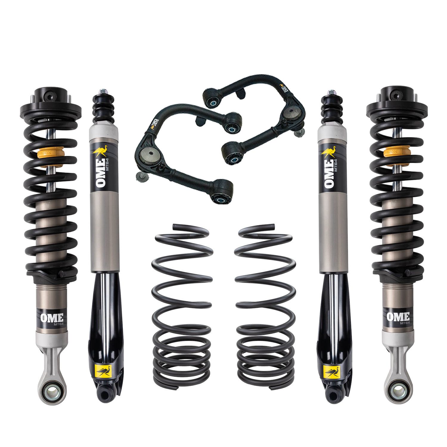 Old Man Emu offers a range of tuned and matched integrated suspension kits to ensure the right suspension is selected for how the vehicle is outfitted and the conditions it will encounter. Old Man Emu suspension systems are designed to enhance ride quality, ride control, load-carrying capacity, and ride height. When building an off-road vehicle, it's best to notate the heavy parts that you plan to add. Heavy components will slowly begin to compress your suspension which results in vehicle sag. Choosing an Old Man Emu integrated suspension kit will avoid sag and ride discomfort as our engineers have tuned and matched suspension components for an range of different weights. Old Man Emu has an offering of 3 different shock absorbers to ensure that you can find an integrated suspension kit to suit your every demand, vehicle outfit and road condition. This suspension lift kit comes with Old Man Emu MT64 shocks. The MT64 is engineered to handle every challenge, from demanding overlanding trips to the daily commute and every custom build in between, the MT64's huge 2.8 aluminum body and vehicle-specific damping ensure optimal performance across any terrain. This suspension lift kit is tuned and matched for the Toyota Landcruiser to provide 3in of lift in the front, with an weight of 0lbs and provide 2in of lift in the rear with an weight of 440lbs, this kit includes upgraded upper control arms.