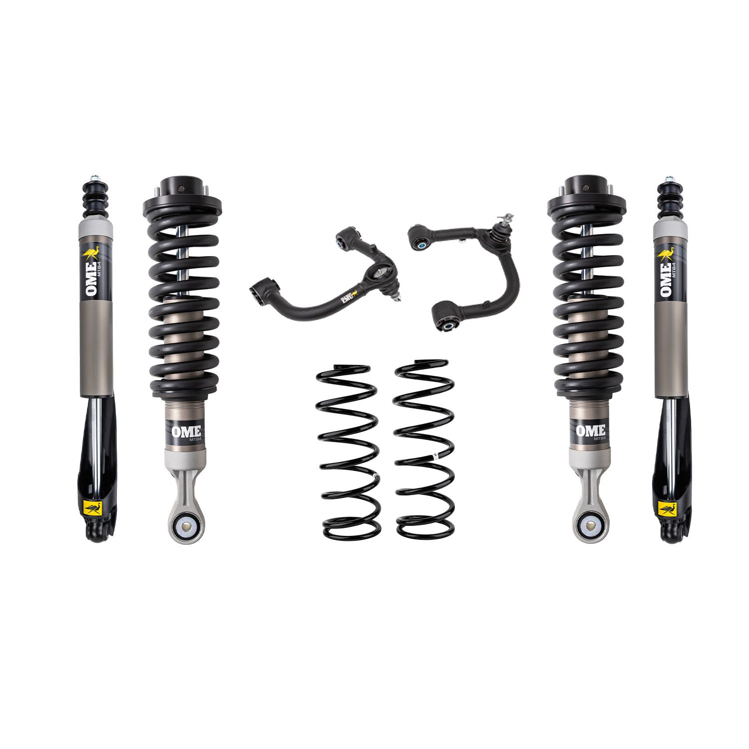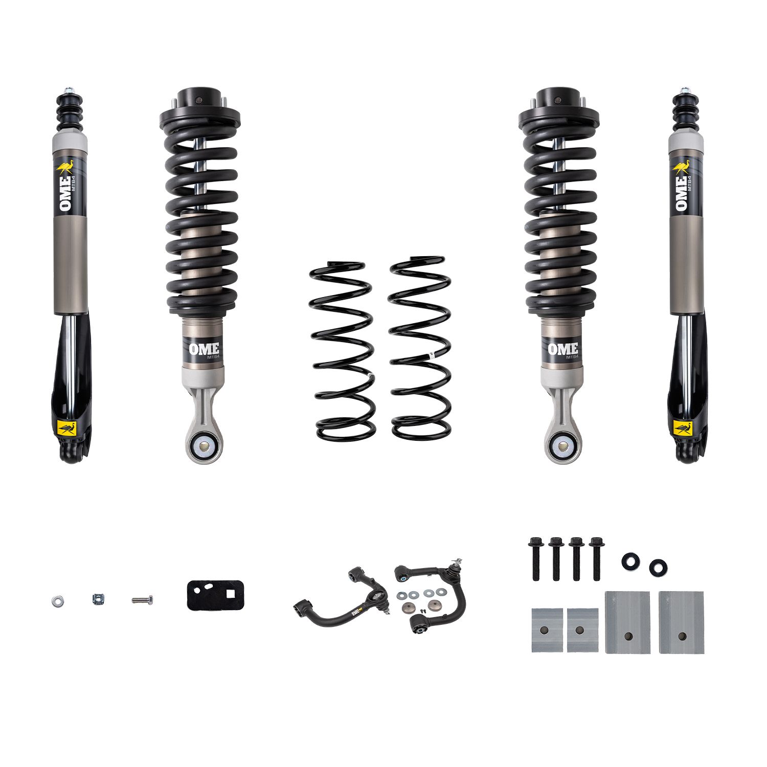 Old Man Emu offers a range of tuned and matched integrated suspension kits to ensure the right suspension is selected for how the vehicle is outfitted and the conditions it will encounter. Old Man Emu suspension systems are designed to enhance ride quality, ride control, load-carrying capacity, and ride height. When building an off-road vehicle, it's best to notate the heavy parts that you plan to add. Heavy components will slowly begin to compress your suspension which results in vehicle sag. Choosing an Old Man Emu integrated suspension kit will avoid sag and ride discomfort as our engineers have tuned and matched suspension components for an range of different weights. Old Man Emu has an offering of 3 different shock absorbers to ensure that you can find an integrated suspension kit to suit your every demand, vehicle outfit and road condition. This suspension lift kit comes with Old Man Emu MT64 shocks. The MT64 is engineered to handle every challenge, from demanding overlanding trips to the daily commute and every custom build in between, the MT64's huge 2.8 aluminum body and vehicle-specific damping ensure optimal performance across any terrain. This suspension lift kit is tuned and matched for the Toyota Tundra to provide 3in of lift in the front, with an weight of 0lbs and provide 2in of lift in the rear with an weight of 0lbs, this kit includes an upper control arm.